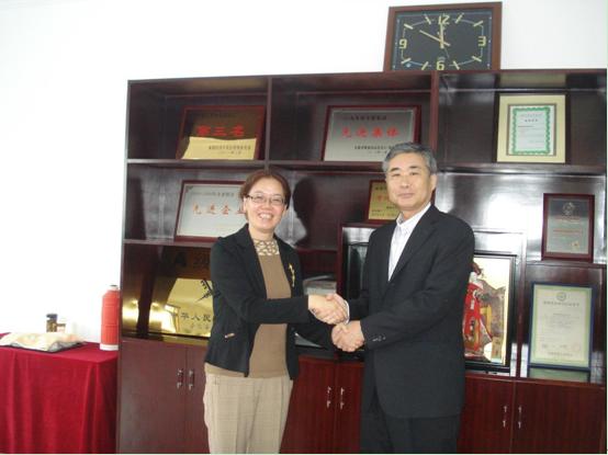石紅董事長(左)和山橋部長簽約后合影留念
