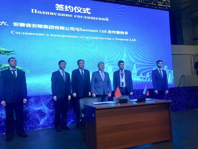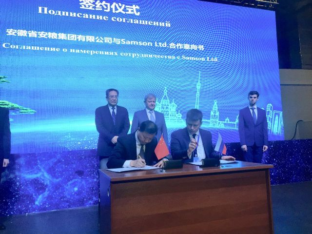 簽約儀式上,曹訓(xùn)立董事長代表安糧集團(tuán)與俄羅斯知名連鎖超市Samson Ltd.代表 Ilya Chekanov 先生簽署了雙方在深化合作擴(kuò)大貿(mào)易額、電商業(yè)務(wù)的拓展以及Samson公司為安糧集團(tuán)橋接當(dāng)?shù)刭Y源向中國進(jìn)口的戰(zhàn)略合作意向書。