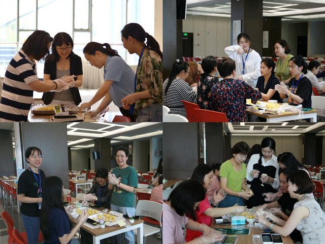 接著進入了大家最躍躍欲試的環(huán)節(jié)——DIY綠豆糕。同事們圍坐一堂,有的揉面,有的裝模,有的擺盤,有的包裝,大家一邊認真制作,一邊相互交流。在大家精心制作下,一個個、一盒盒香甜美味、花色各異的綠豆糕呈現在眼前。活動現場其樂融融,洋溢著和諧、平安與幸福的氛圍,大家一起感受親手制作綠豆糕帶來的歡樂。