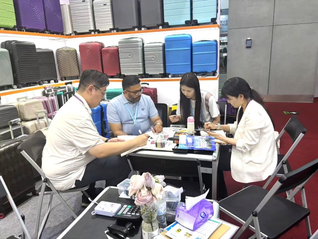 箱包展區(qū)推出70余款不同材質(zhì)和設(shè)計(jì)的產(chǎn)品,如超輕材質(zhì)PP拉桿箱、ABS拉桿箱、旅行布箱等。其中PP拉桿箱因其高性價(jià)比,受到歐洲、中東、南美客商青睞。參展期間,業(yè)務(wù)團(tuán)隊(duì)根據(jù)客商反饋,及時(shí)調(diào)整展品布置,確保每日展出的箱包品類與陳列形式持續(xù)更新,大大提升了客戶體驗(yàn)。